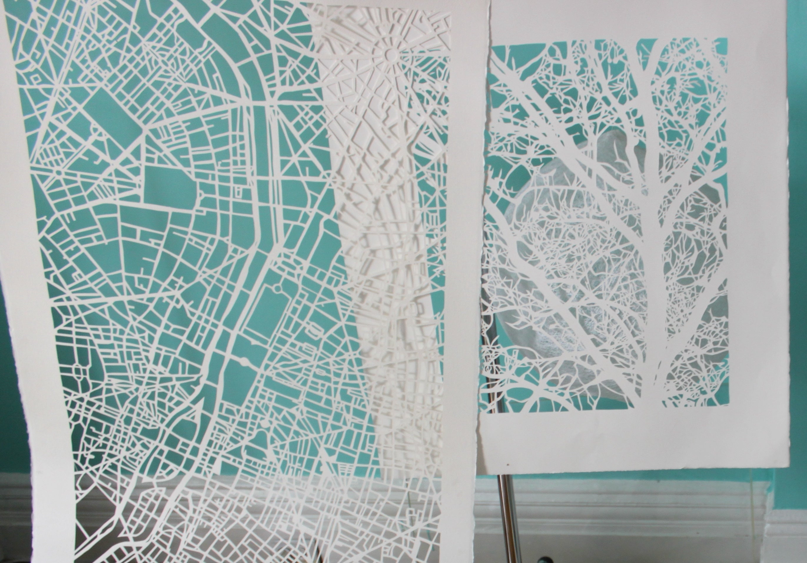 NEVER. NEVER. Each made is made in the most time-consuming way possible: I sit at my desk and cut out each little piece with an Xacto blade. A small map might take an hour — a large map (such as Austin) will take days. Each design is unique and non-reproducible.